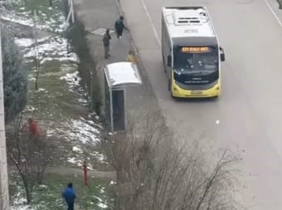 Bursa’da kar topu gerginliği: Otobüs şoförü çocukları sopayla kovaladı
