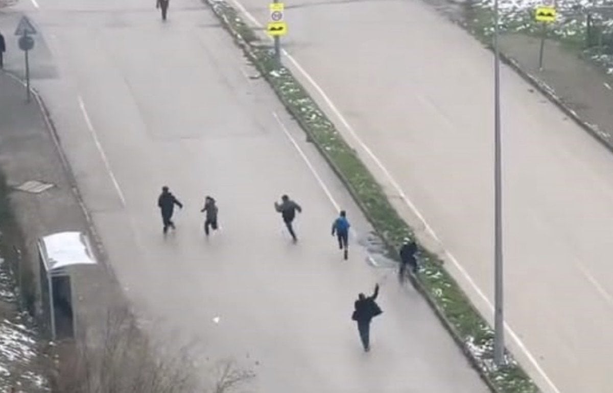 Şoförlerden biri, aracını yol kenarına park ederek eline sopa aldı ve çocukların peşinden koştu.
