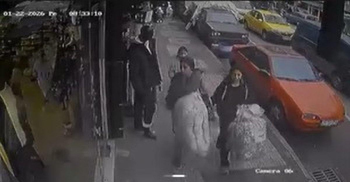 2 kadın bir mağazanın önünde, kaldırımdaki askında duran kıyafetleri el çabukluğuyla çaldı.
