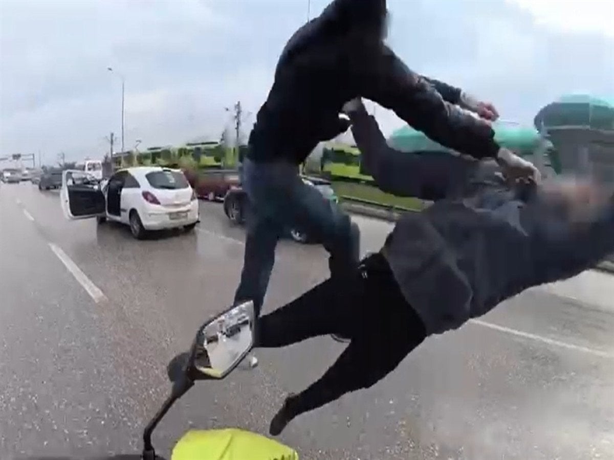 Tartışmanın büyümesi üzerine taraflar araçlarını yol ortasına durdurarak birbirine tekme ve yumrukla saldırdı.