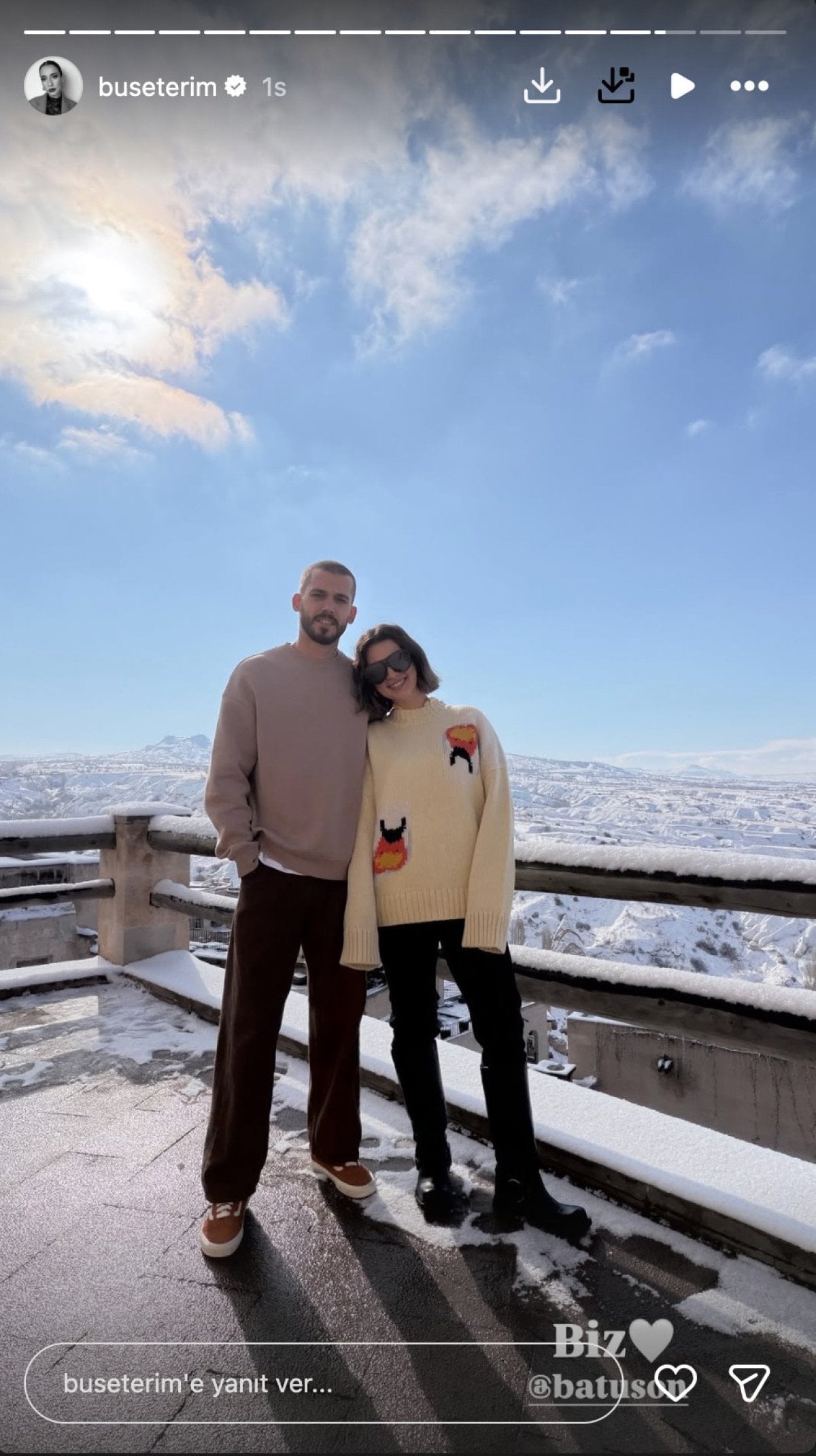 Erkek arkadaşıyla birlikte yer aldıkları fotoğrafa ‘Biz” notunu düşen ünlü fenomen, beyaz kalp emojisi bıraktı. Terim’in erkek arkadaşının Instagram hesabının ‘batuson’ olduğu görüldü.