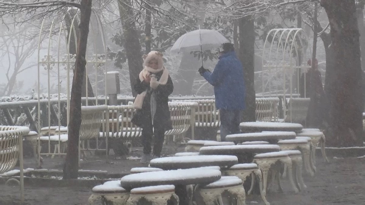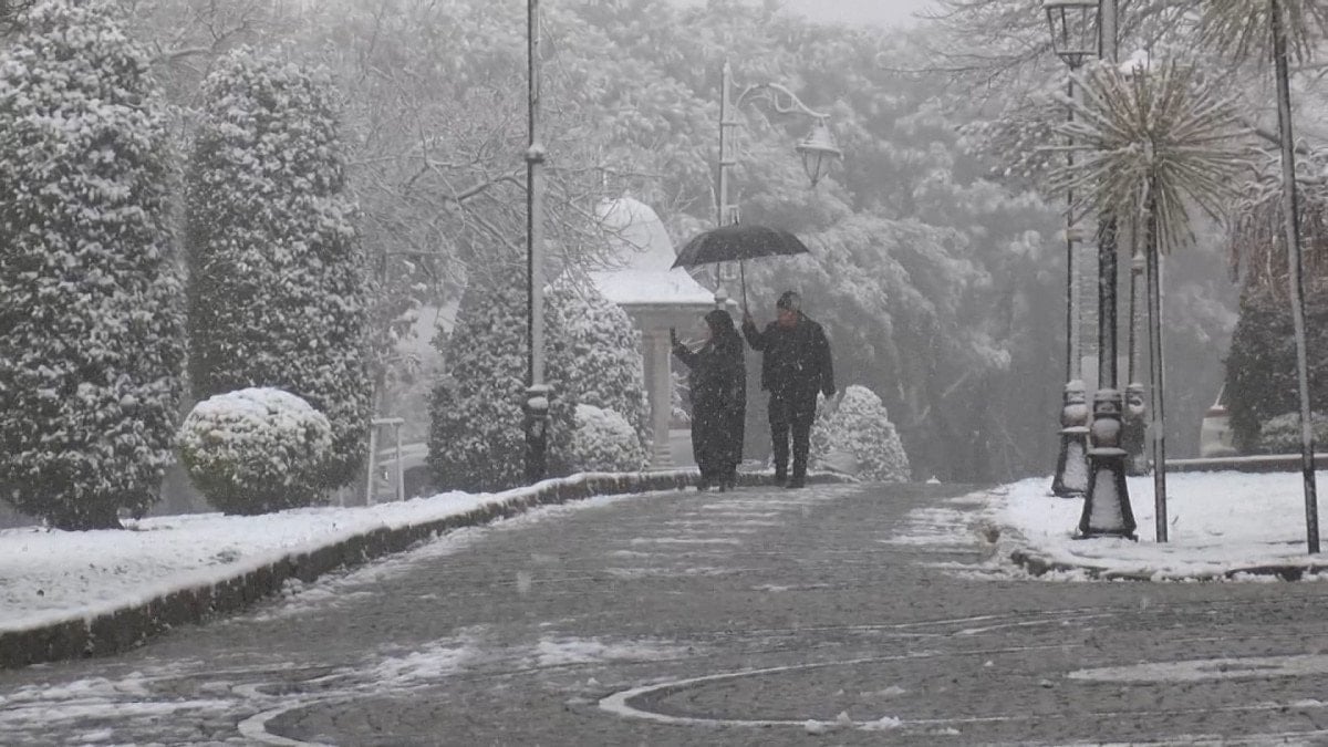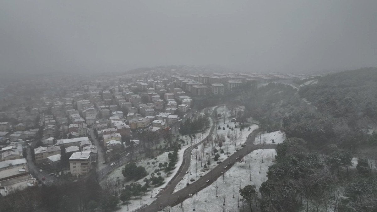 Kar yağışı, Çamlıca Tepesi’nde drone ile görüntülendi.