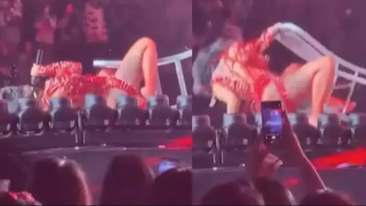 Görüntülerde sanatçının ritimle dans ettiği ve bir anda dengesini kaybederek sandalyeden aşağı doğru yuvarlandığı görüldü.