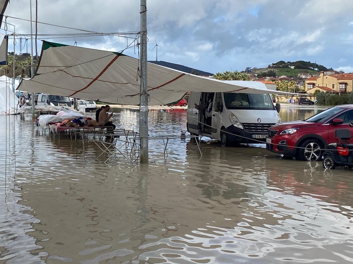 Çeşme’yi sağanak vurdu: Pazaryeri su altında kaldı