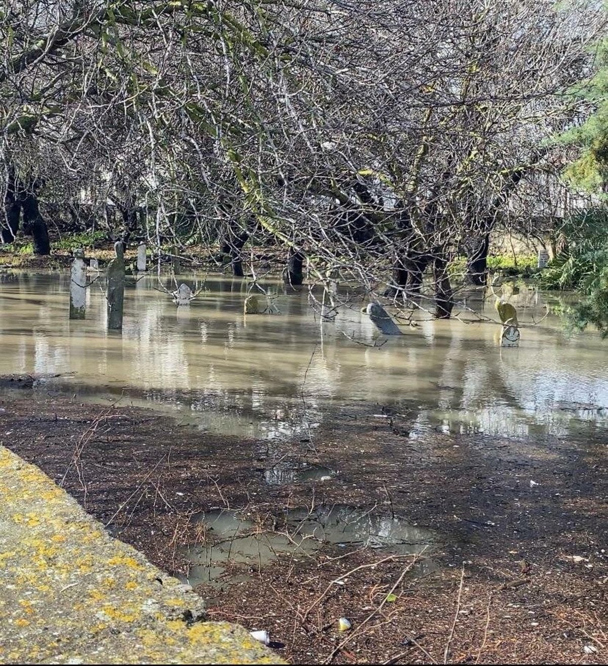 Öte yandan, sağanak nedeniyle Hacı Memiş Kabristanlığı’nda da su birikintileri oluştu.