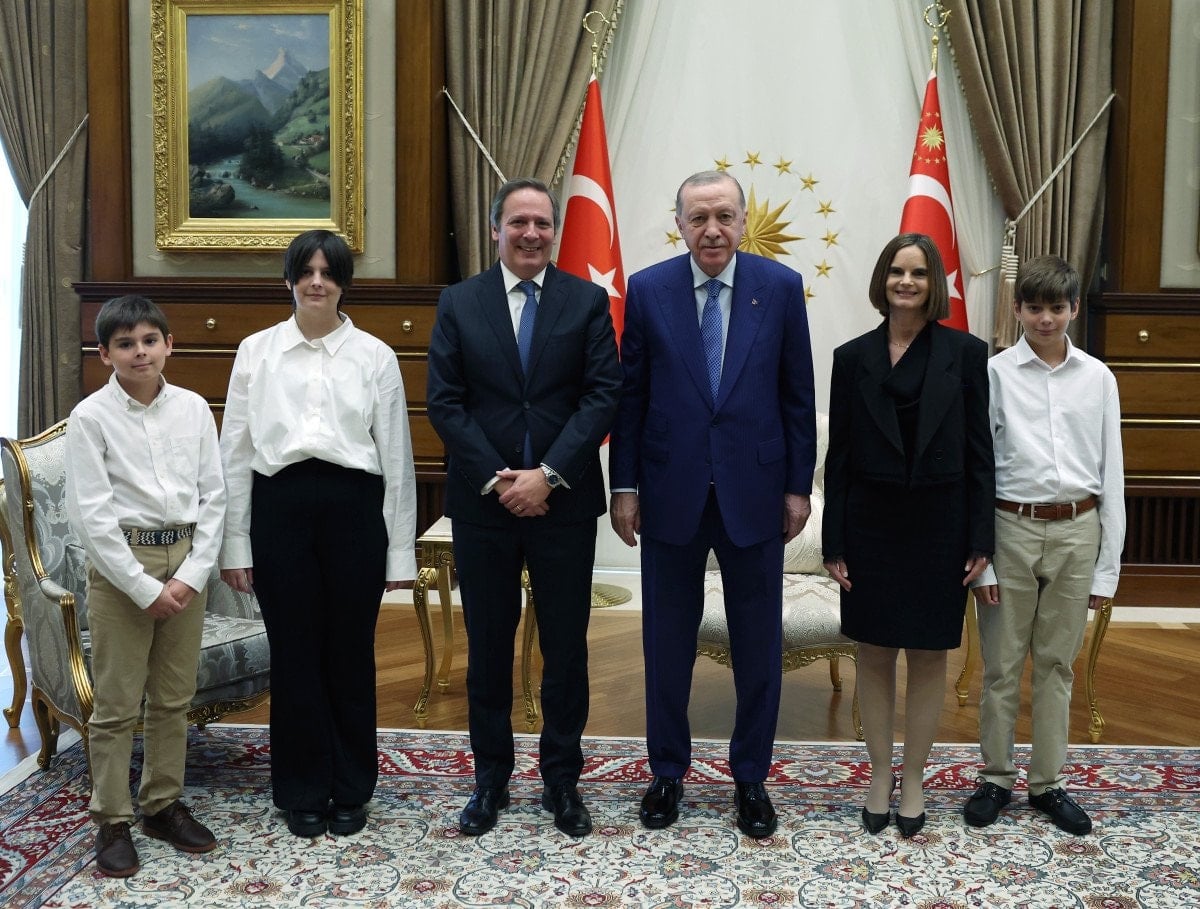 Kabulde; İtalya’nın Ankara Büyükelçisi Giuseppe Manzo, Arjantin Büyükelçisi Pablo Jose Rodriguez Brizuela ile Katar Büyükelçisi Faisal Abdullah H.A. Al-Hanzab hazır bulundu. Büyükelçiler, aileleri ve büyükelçilik mensuplarıyla birlikte Cumhurbaşkanı Erdoğan’a takdim edildi.