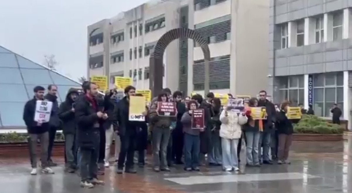 Kampüs önünde toplanan bir grup öğrenci, Cumhurbaşkanı Erdoğan’ın gelişini protesto ederek, eylem yaptı.