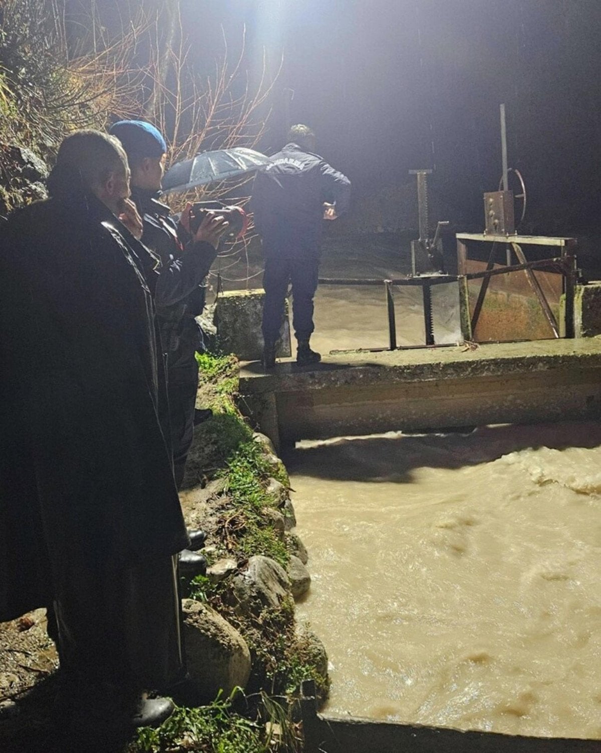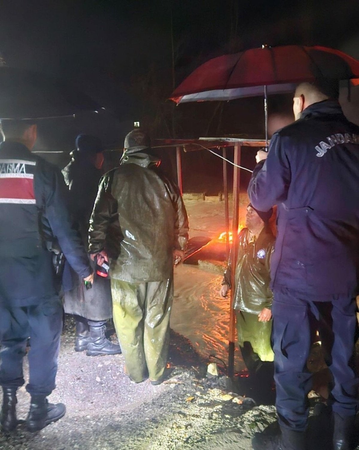 Bir ara dengesini kaybeden Bayram Kök, sağanak nedeniyle debisi yükselen dereye düştü.