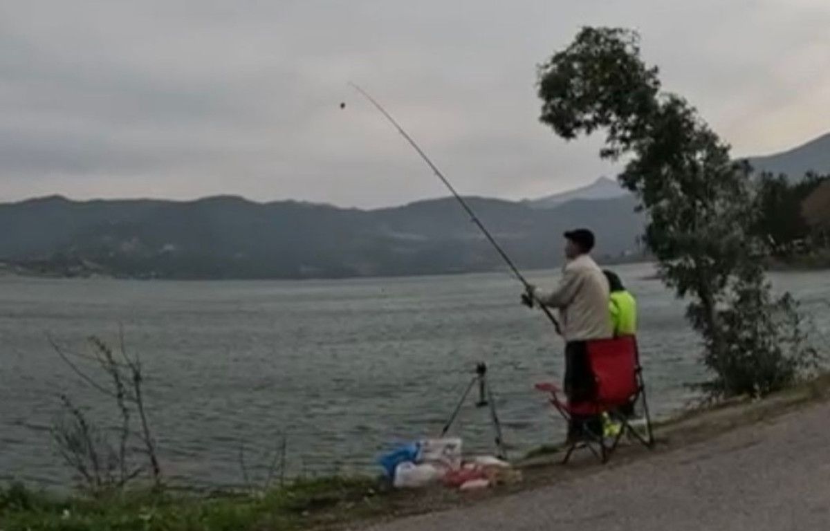 Derbent Barajı’nda gökkuşağı alabalığı için olta atıldı