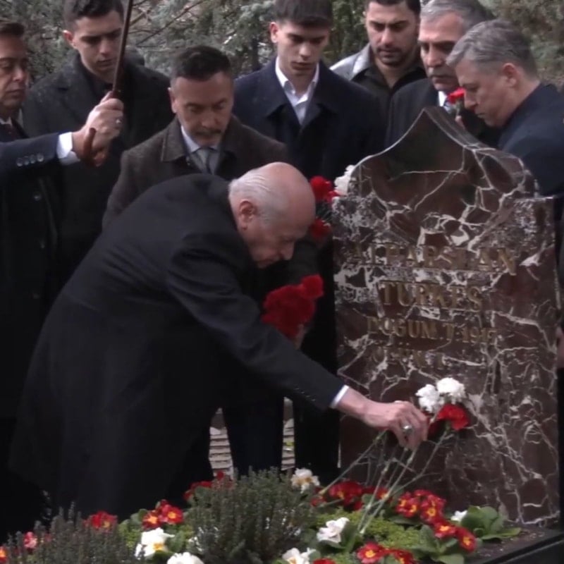 Ramazan Bayramı sabahı MHP Lideri Devlet Bahçeli, Alparslan Türkeş’in mezarını ziyaret etti.