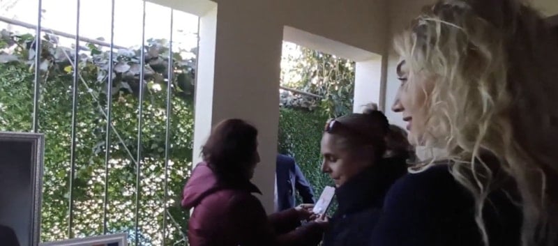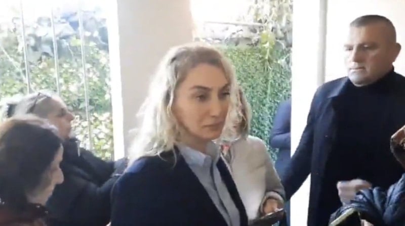 Duruşmaya verilen arada maketi ziyaret eden Dilek İmamoğlu, kadınlar tarafından karşılandı.