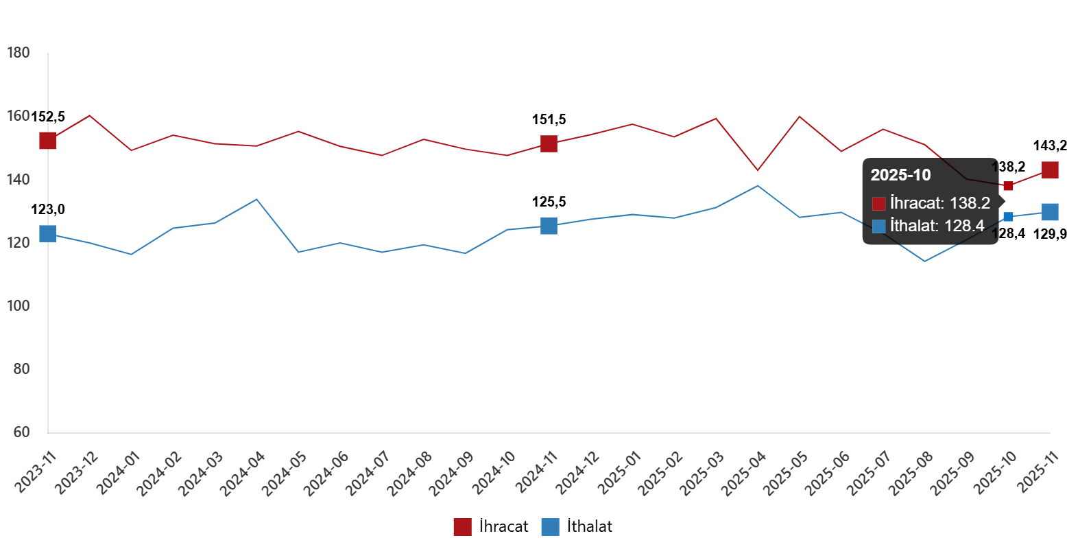 Dış ticaret hadleri, Kasım 2025