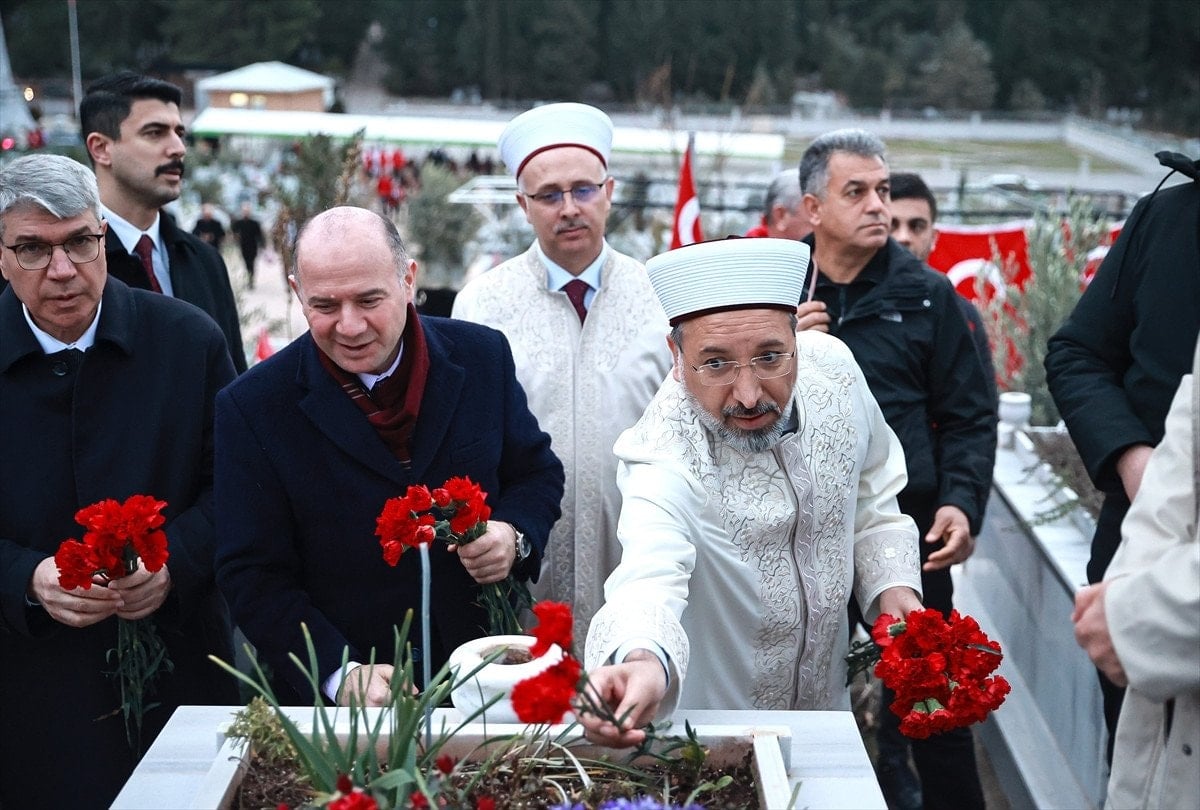 Namazın ardından Diyanet İşleri Başkanı Arpaguş ile Vali Serdengeçti, Osmaniye Asri Mezarlığı’nda bulunan “deprem şehitliği”nde düzenlenen anma programına iştirak etti.
