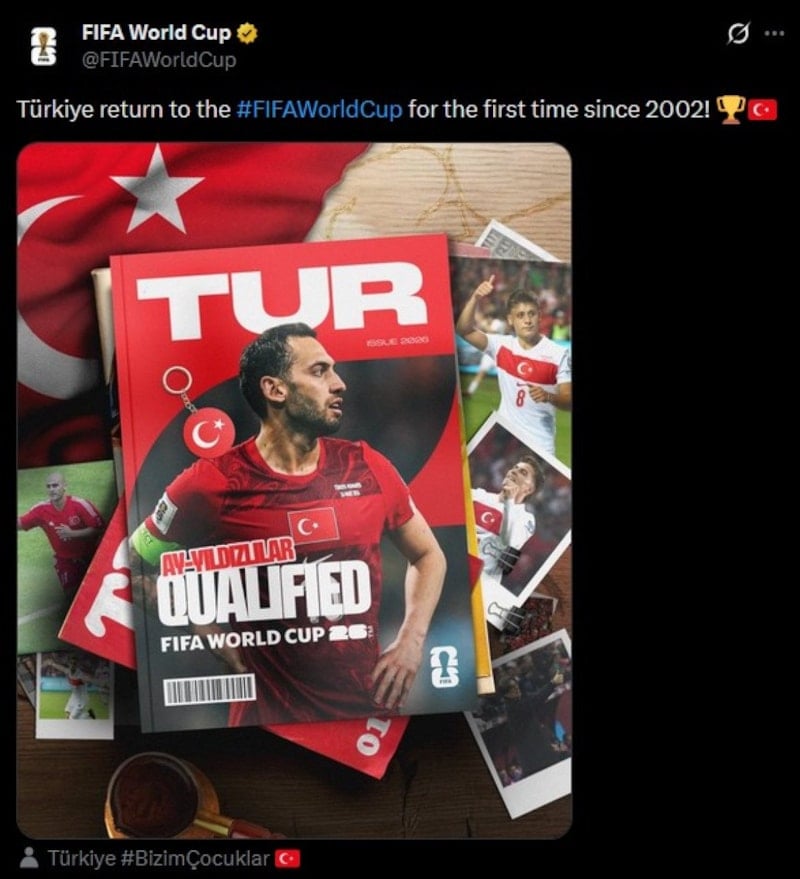 Bu görkemli zaferin ardından FIFA Dünya Kupası’nın resmi hesabından A Milli Takım’a dair bir paylaşım yapıldı.