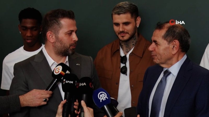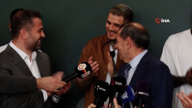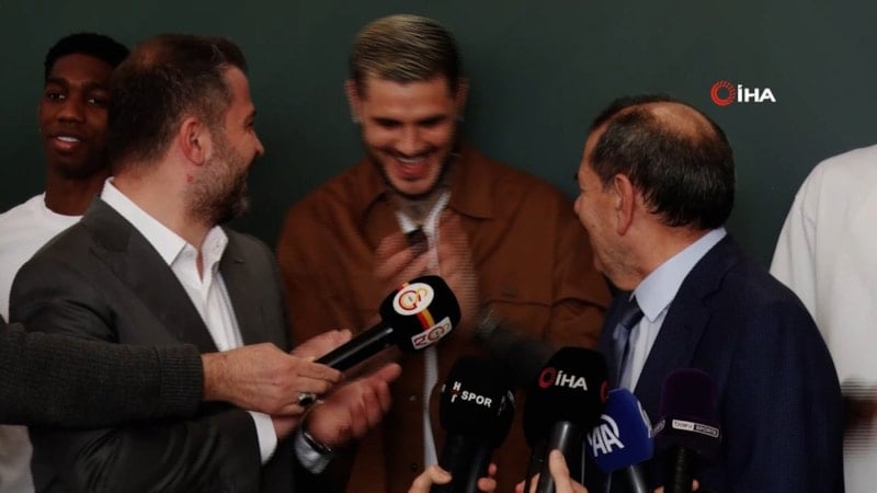 Basın toplantısı sırasında sakin tavırları ile dikkat çeken Mauro Icardi’nin, Dursun Özbek’in prim açıklaması sonrası eğlenceli tavırları ise dikkat çekti.