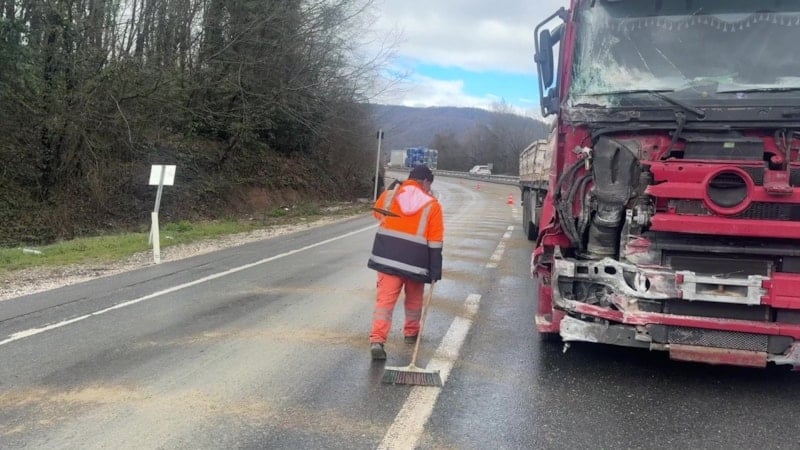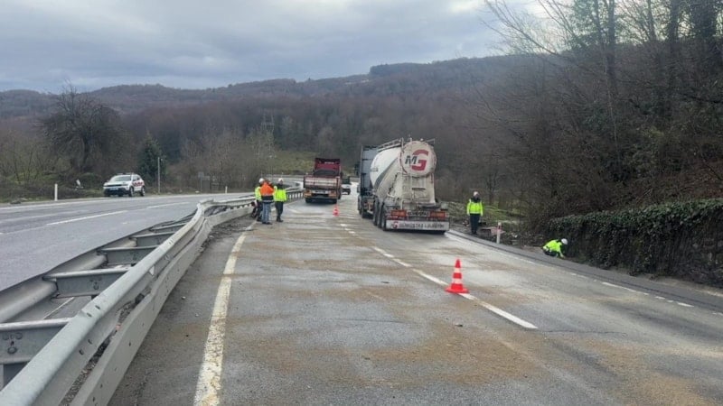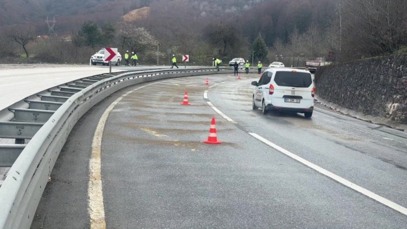 Tırın sol şeride çekilmesinin ardından trafik akışı tek şeritten kontrollü olarak yeniden sağlandı. Uzun araç kuyruklarının oluştuğu bölgede ekipler, yolda güvenlik önlemleri alarak çalışmalarını sürdürdü.