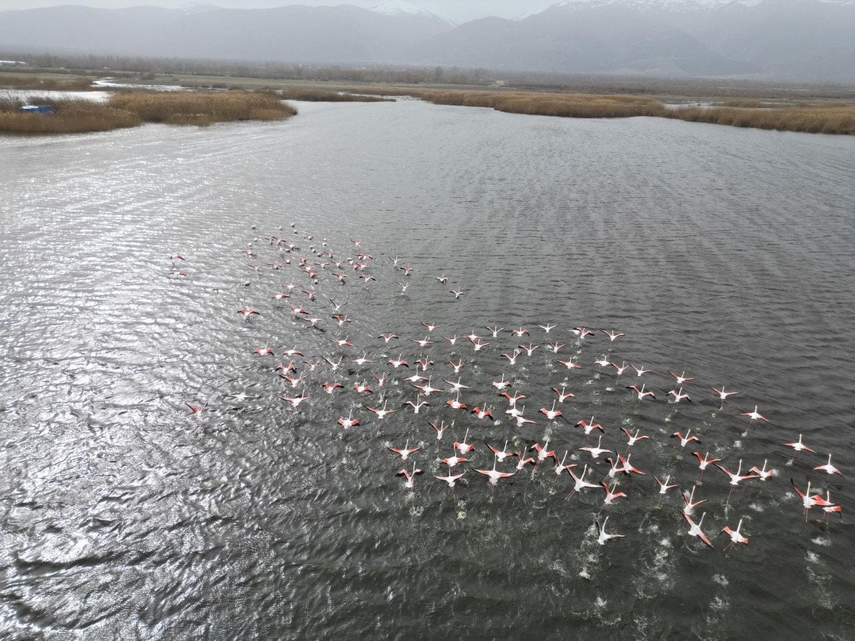 Flamingoların su yüzeyine yansıyan pembe tonları, göl çevresinden geçen vatandaşların ilgisini çekti. Nadir görülen bu tablo, bölgedeki doğal yaşamın zenginliğini bir kez daha gözler önüne serdi.