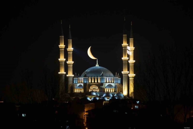 Fotoğraf sanatçısı Turhan Ülgüder tarafından çekilen karelerde, gökyüzünde yükselen hilalin, kentin simgesi olan Selimiye Camii’nin siluetiyle adeta bütünleştiği görülüyor.