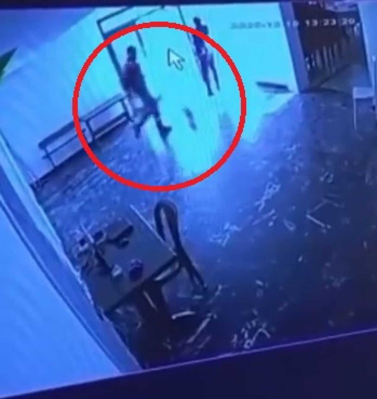 Tesise giren bir kedi, görevli tarafından tekme atılarak dışarı çıkarıldı.