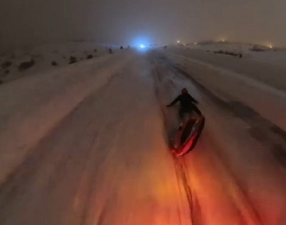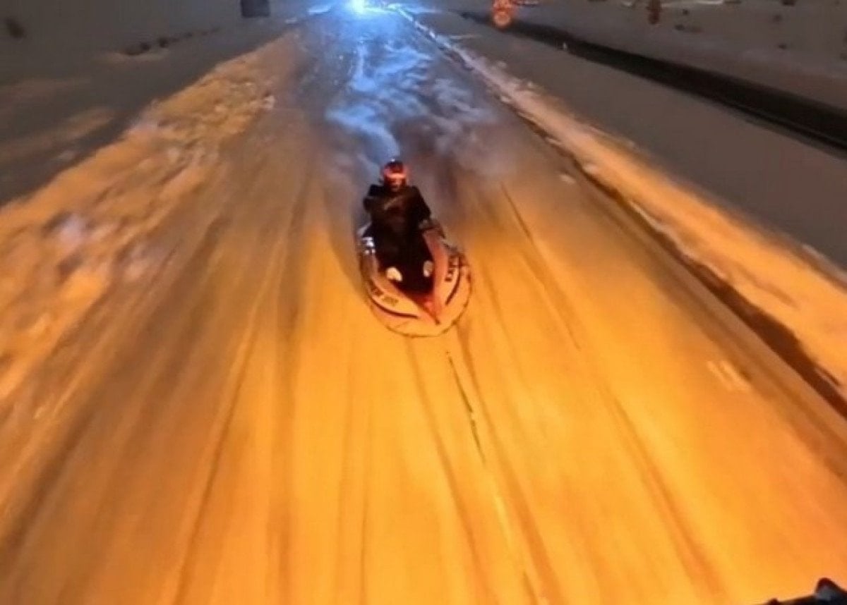 Elazığ’da kar yağışının ardından vatandaşlar, eğlenceli vakit geçirmek için sıra dışı bir yönteme başvurdu. Harput bölgesinde bir araya gelen grup, şişme botu ATV araca bağlayarak kar üzerinde çekmeye başladı.