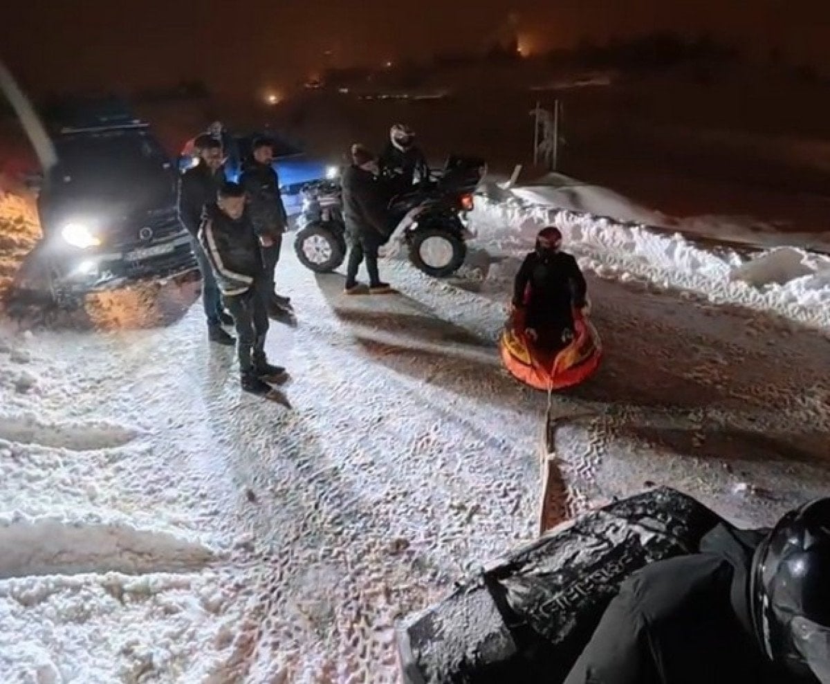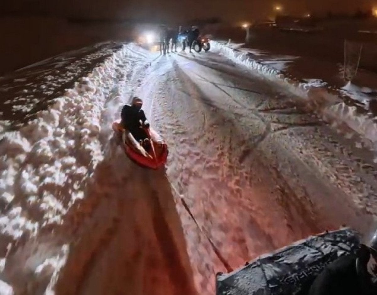 Elazığ’da kar eğlencesi tehlikeye dönüştü: Şişme botu ATV ile çektiler