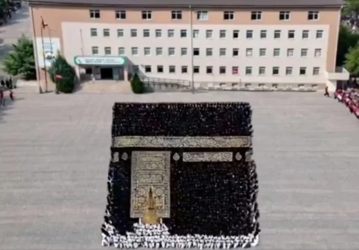 Öğrencilerin bedenleriyle oluşturduğu devasa Kâbe ve Mescid-i Nebevî silüetleri izleyenleri hayran bırakırken, gösterinin finalinde oluşturulan Lafza-i Celal (Allah ismi) görselleri manevi atmosferi zirveye taşıdı.