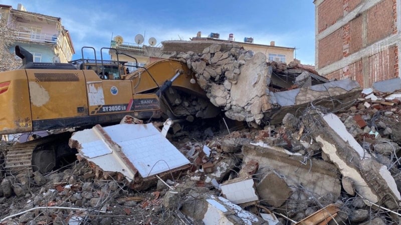 Elazığ’da yıkım sırasında enkaz, iş makinesinin üzerine çöktü