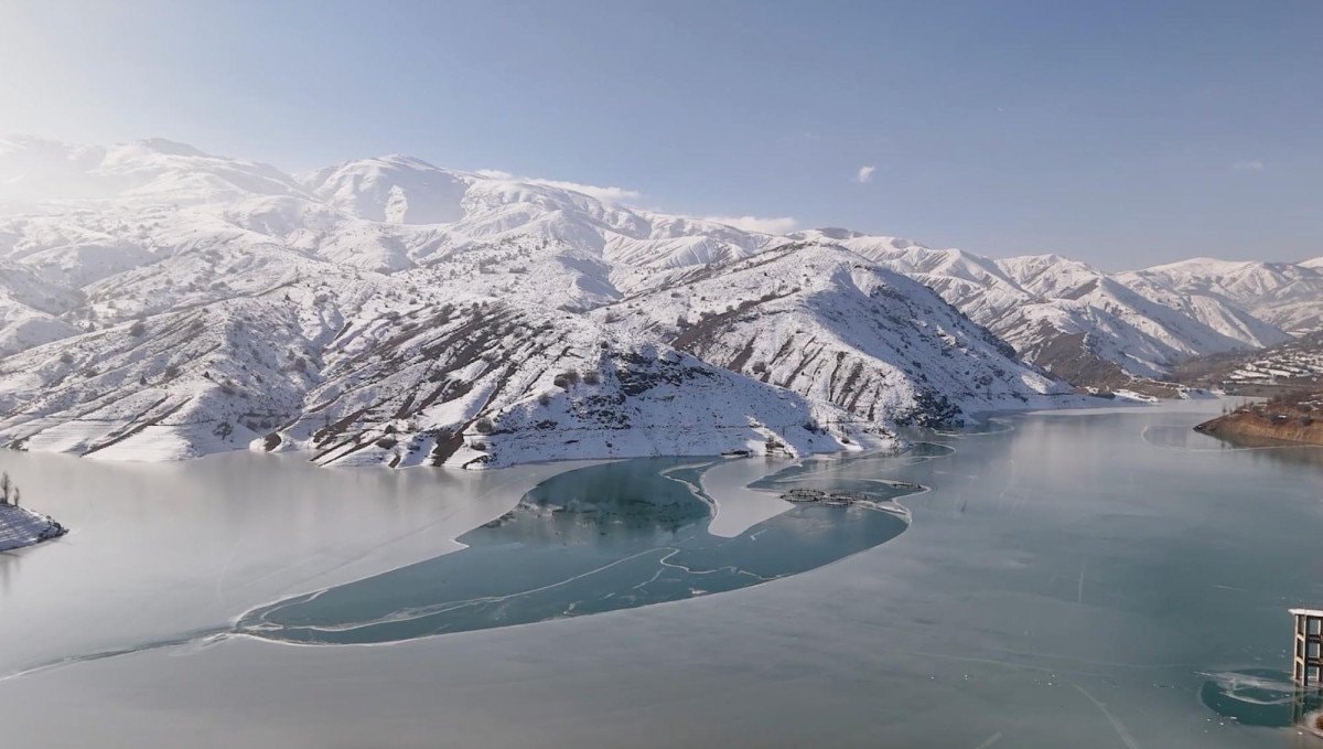 Erzincan Göyne Baraj gölünün yüzeyi buz tuttu