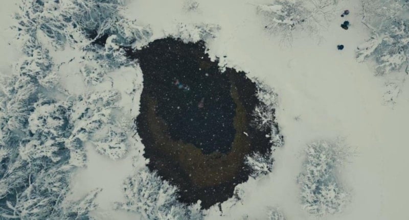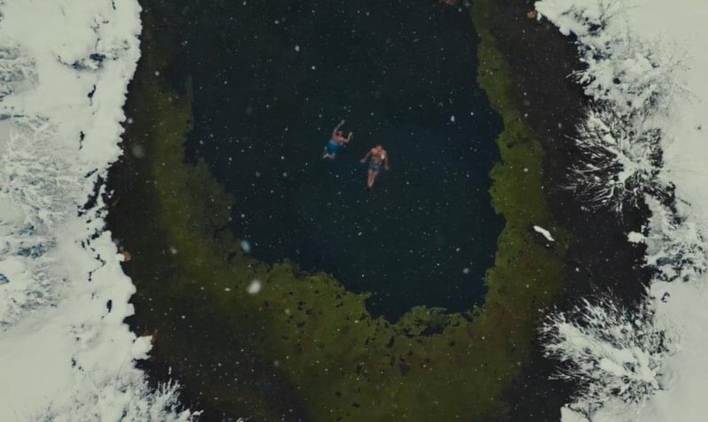 Gerçekleşen yüzme etkinliği drone kamerasıyla havadan görüntülendi. Karla kaplı doğa ile göletin oluşturduğu kontrast, ortaya etkileyici görüntüler çıkardı.