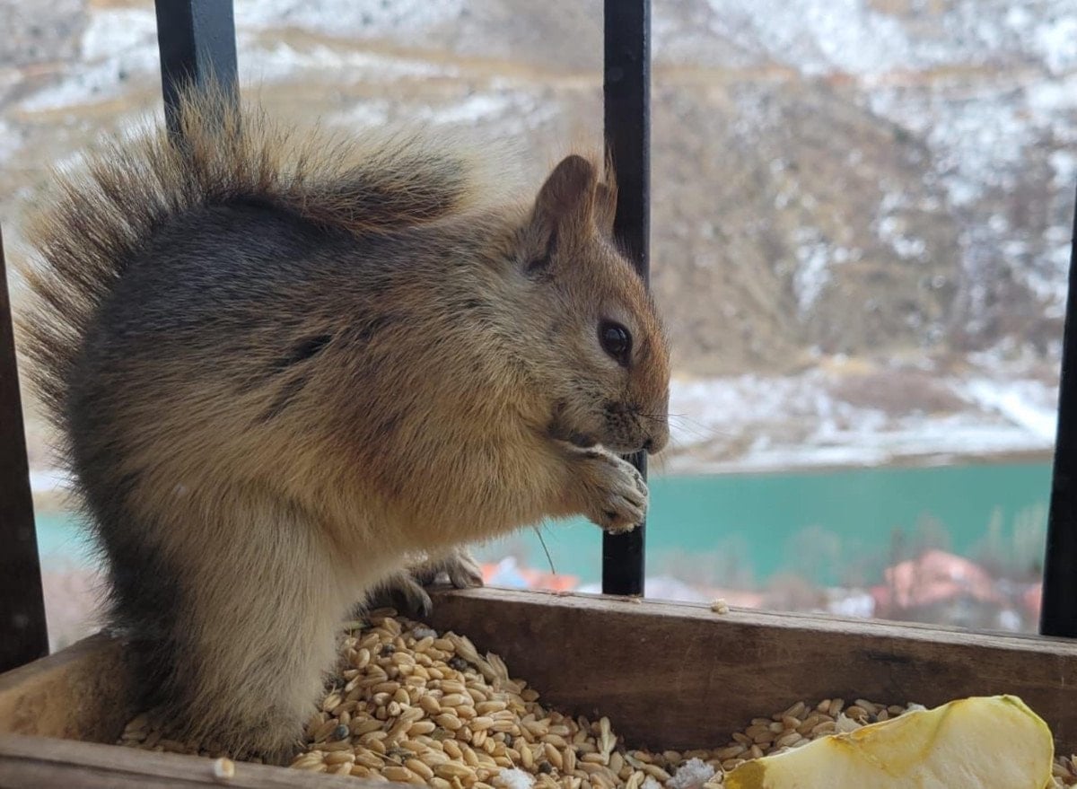 Erzincan’da her gün penceresine gelen sincabı besliyor