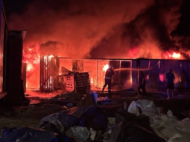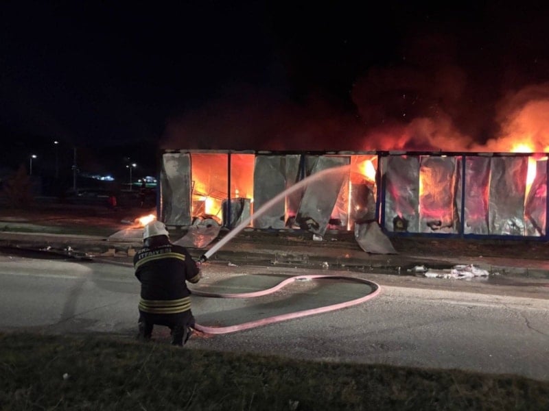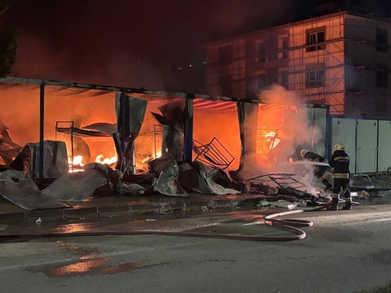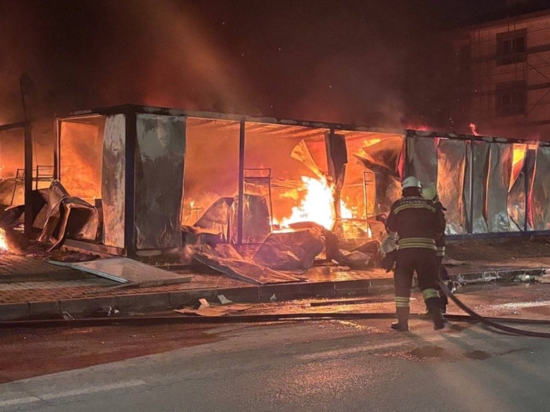 Erzincan’da şantiyede yangın: Konteynerler küle döndü