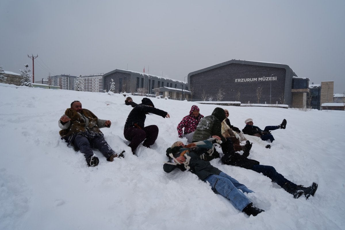 Erzurum’da Belçikalı turistlerin kar sevinci