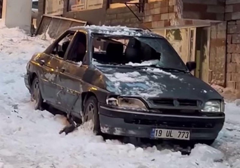 Düşen kar, bina önünde park halindeki 19 UL 773 plakalı otomobilin üzerine geldi. Çarpmanın etkisiyle araç büyük hasar aldı ve kullanılamaz hale geldi.