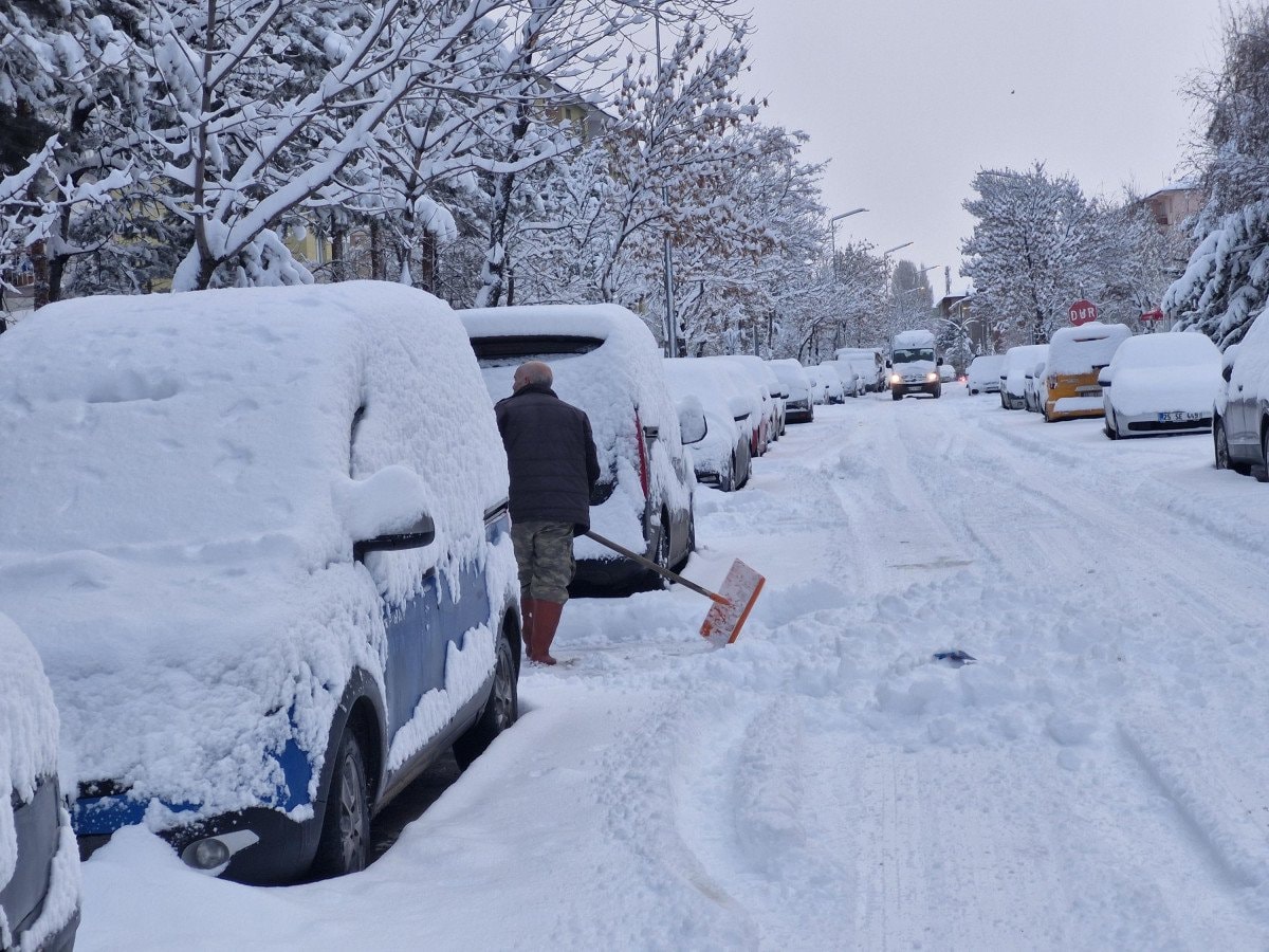 Park halindeki araçların karla kaplandığı kentte, belediye ekipleri temizlik çalışması başlattı. Kar yağışı kırsalda da etkili oldu.
