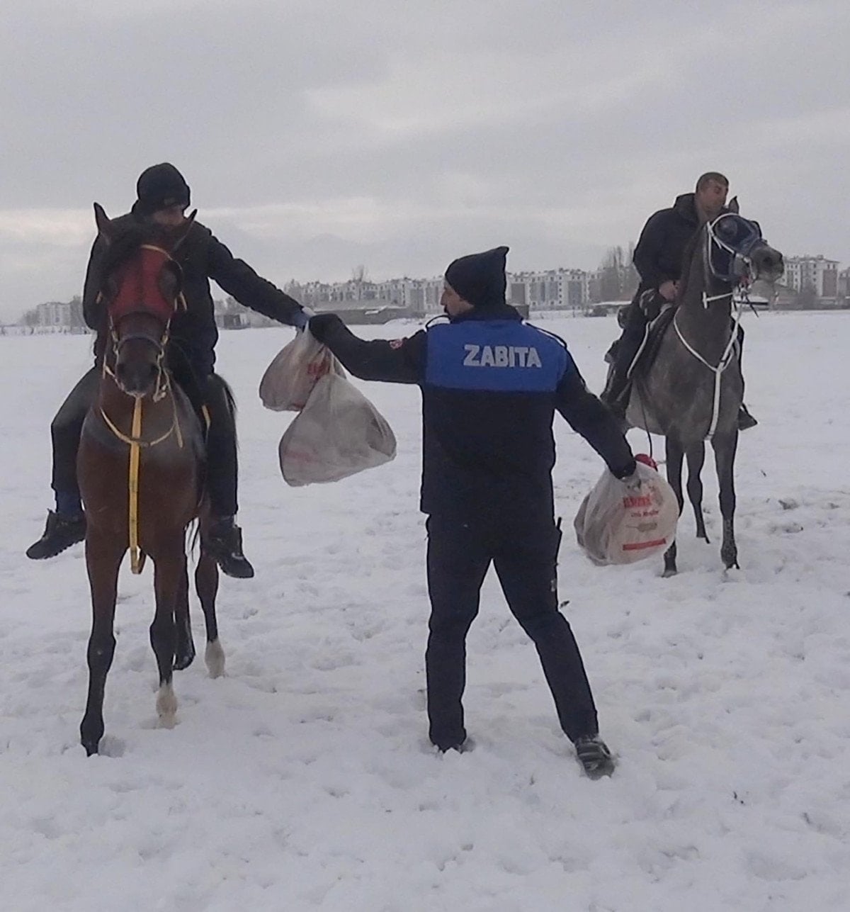 Aziziye Şengel Atlı Spor Kulübü sporcularından Onur Korkmaz ise Erzurum’daki sert kış şartlarına dikkat çekerek, “Son günlerde kurtların merkeze yakın yerlere kadar indiği görülüyor. Hayvanlar aç, yiyecek bulmakta zorlanıyorlar.
