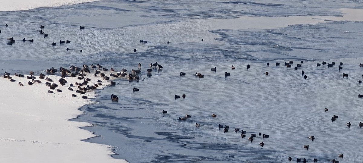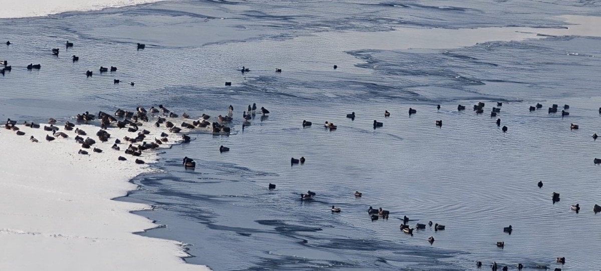Göçmen kuşlar için önemli bir konaklama ve beslenme noktası olan HES Göleti, aşırı soğuklar nedeniyle neredeyse tamamen dondu. Gölette yaşamını sürdüren kuşlar, hayatta kalabilmek için yalnızca gölete akan suyun oluşturduğu küçük, buz tutmamış alanlarda yiyecek aramaya çalışıyor.
