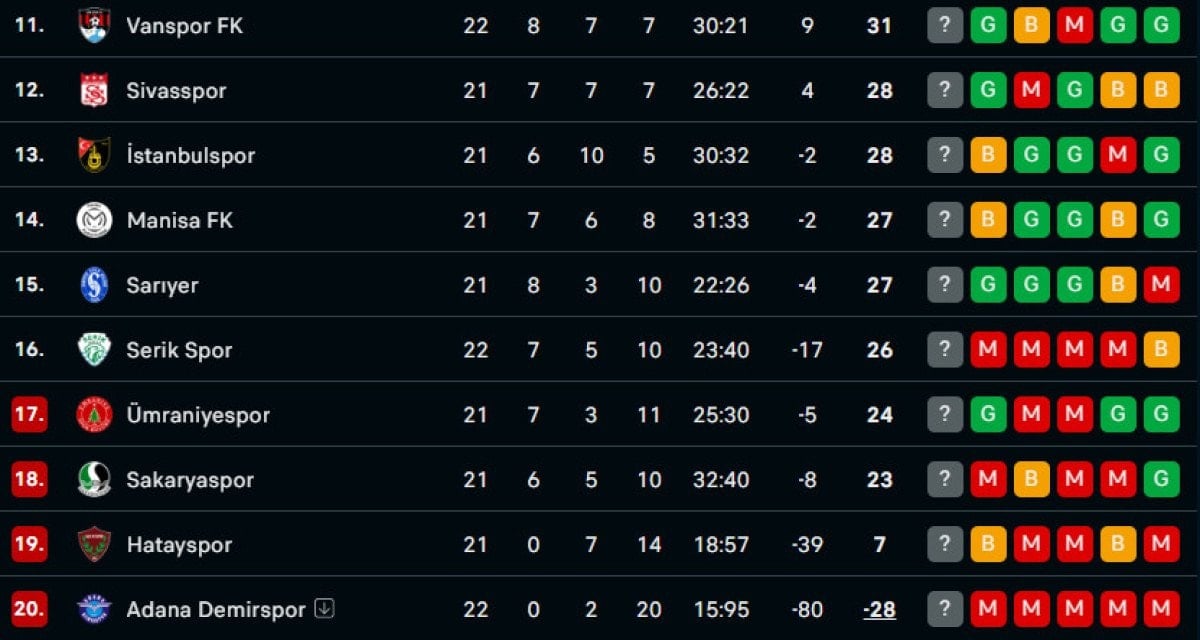 LİGDEKİ SON DURUM