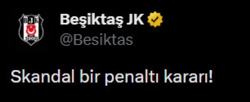 Siyah-beyazlılar, “Skandal bir penaltı kararı!” ifadelerinin yer aldığı bir paylaşım yaptı.