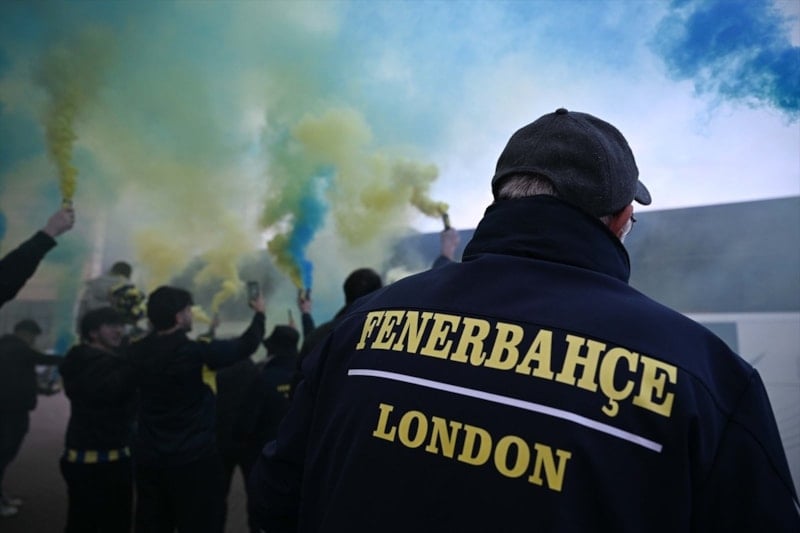 İstanbul’dan özel uçakla yaklaşık 4,5 saatlik yolculuğun ardından Nottingham’a ulaşan sarı-lacivertli kafileyi, konaklayacağı otel önünde bir grup taraftar meşalelerle karşıladı.