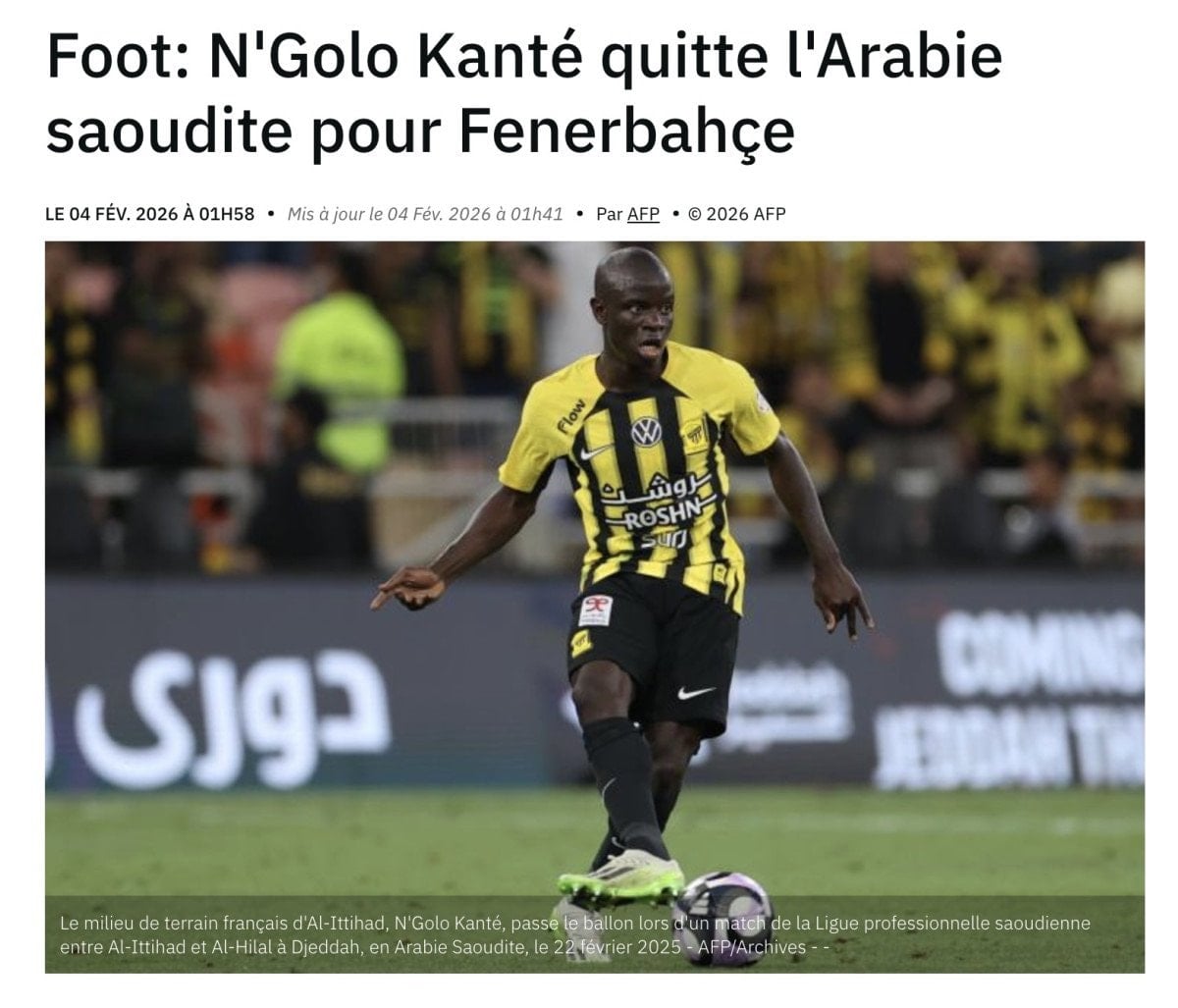 “Sonunda N’Golo Kante, Suudi Arabistan futbolunu bırakıp Fenerbahçe’ye katılacak. Önceki gün belgelerin tesliminde yaşanan gecikme nedeniyle ortaya çıkan ve Türk kulübünün Al-İttihad’ı sert bir şekilde eleştirmesine yol açan sorunların ardından, FIFA’nın Salı günü öğleden sonra operasyona yeşil ışık yaktığı bildirildi.”