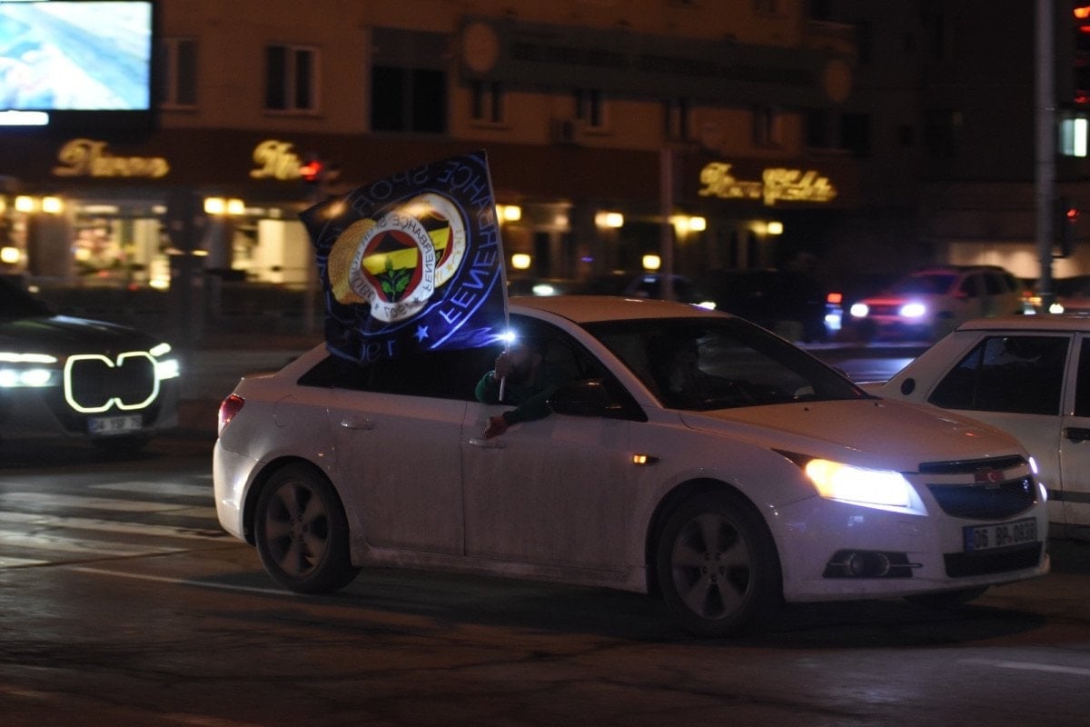 Maçın bitiş düdüğünün ardından sarı-lacivertli taraftar, Ankara’nın en işlek noktalarından biri olan Kızılay Meydanı’nda bir araya geldi.