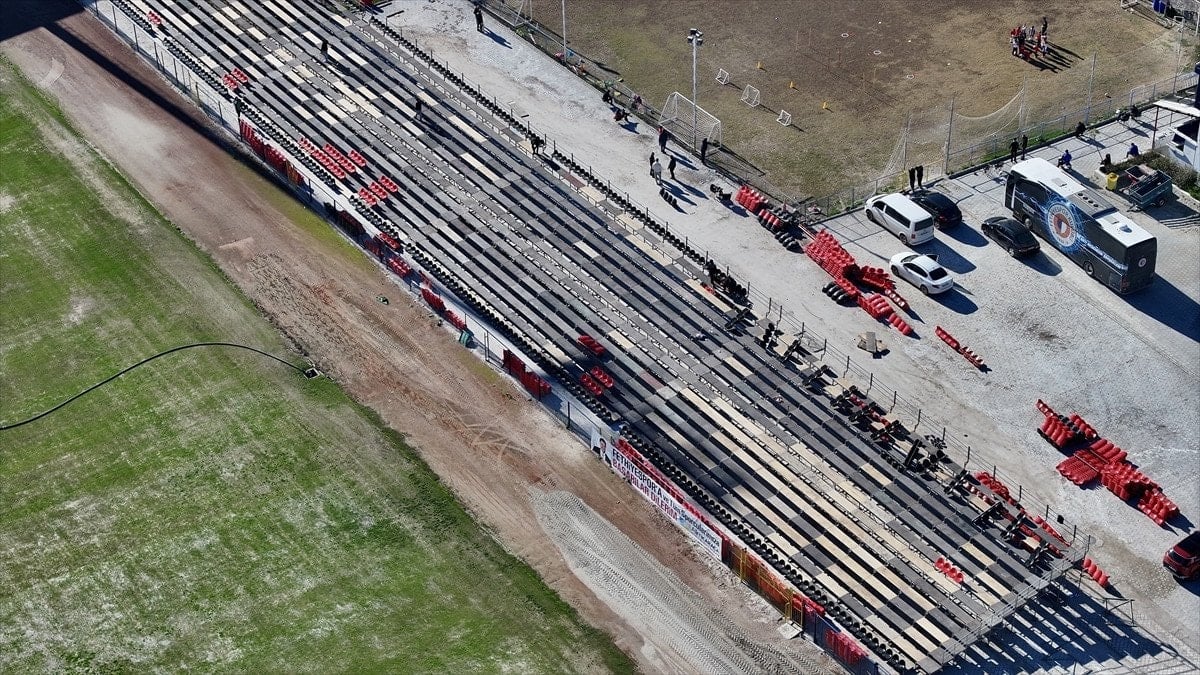 Deprem analiz raporları olumsuz çıkan stadın betonarme tribününün yıkıldığını kaydeden Yiğit, “Onun yerine portatif bir tribün ekleme yapmamız gerekti. 3 bin kişilik tribün imalatı devam ediyor. Pazartesi, salı gibi de tribün işi bitmiş olacak.” bilgisini verdi.