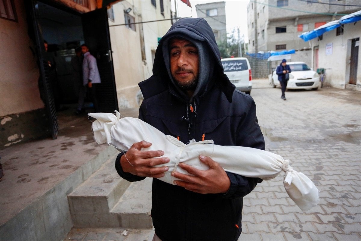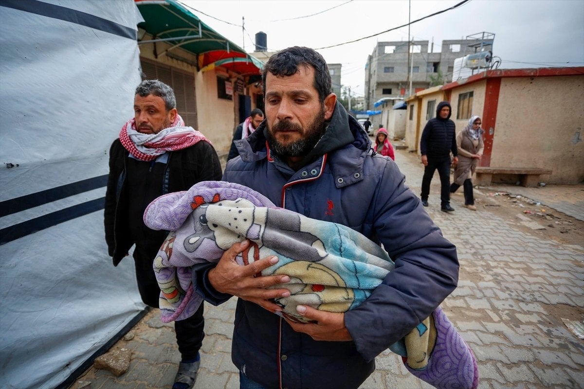 Bir yaşındaki bebek Muhammed Besyuni, İsrail saldırıları nedeniyle yerinden edilen ailesinin kaldığı çadırın soğuk havaya dayanıksız olması sebebiyle donarak hayatını kaybetti.