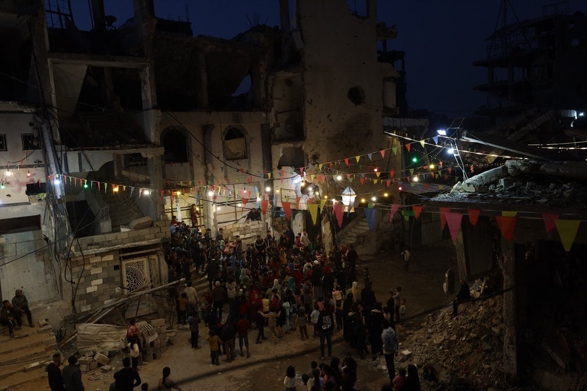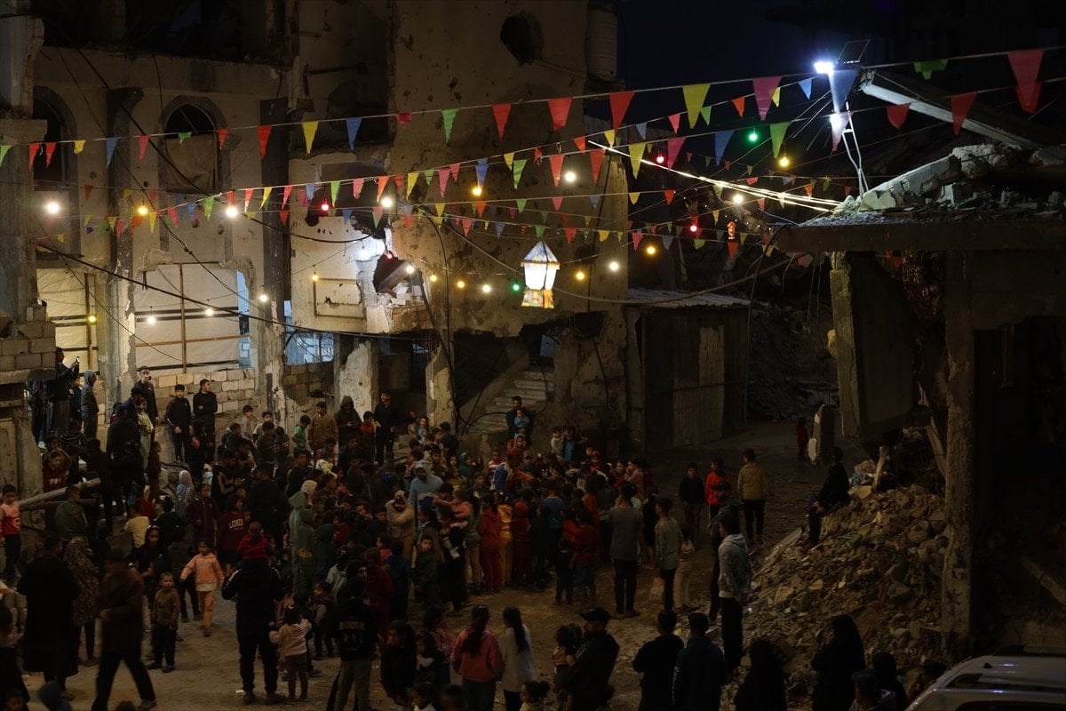Filistinliler, yıkımın ortasında sokaklara asılan Ramazan süsleriyle ayın manevi atmosferini yaşadı.