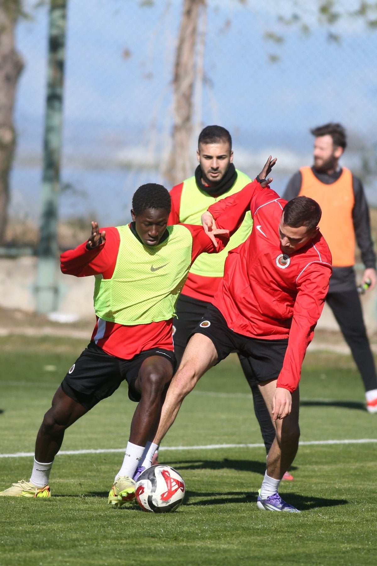 İdmanda, ısınmaya yönelik koordinasyon hareketlerinin ardından direnç lastikleriyle egzersiz çalışması yapan oyuncular, daha sonra 5’e 2 top kapma oyununa geçti.