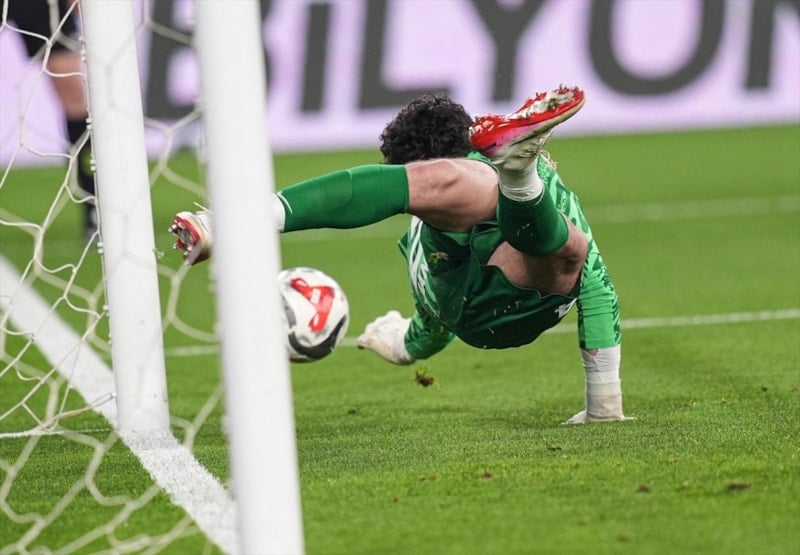 Eyüpspor’un genç kalecisi Jankat Yılmaz, Janderson’un penaltısında köşeye iyi uzanarak gole izin vermedi.