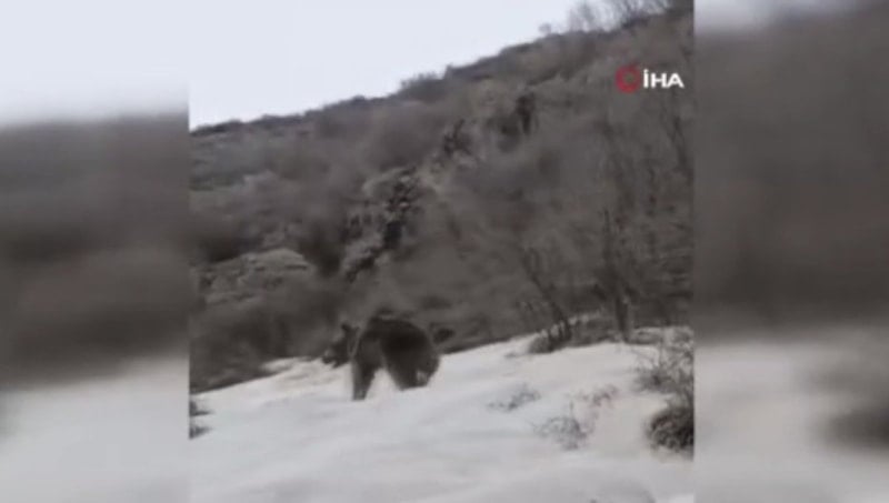 İlçe merkezine 28 kilometre uzaklıktaki İran sınırında bulunan Alan köyü kırsalında, kış uykusundan uyanan bir ayı görüntülendi.