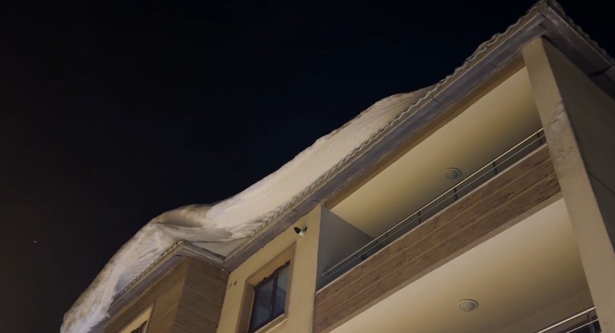 İlçe merkezinde kar kalınlığının 1 metreyi, yüksek kesimlerde ise 3 metreyi geçmesiyle birlikte çatılarda biriken buz kütleleri, büyük bir risk faktörüne dönüştü.