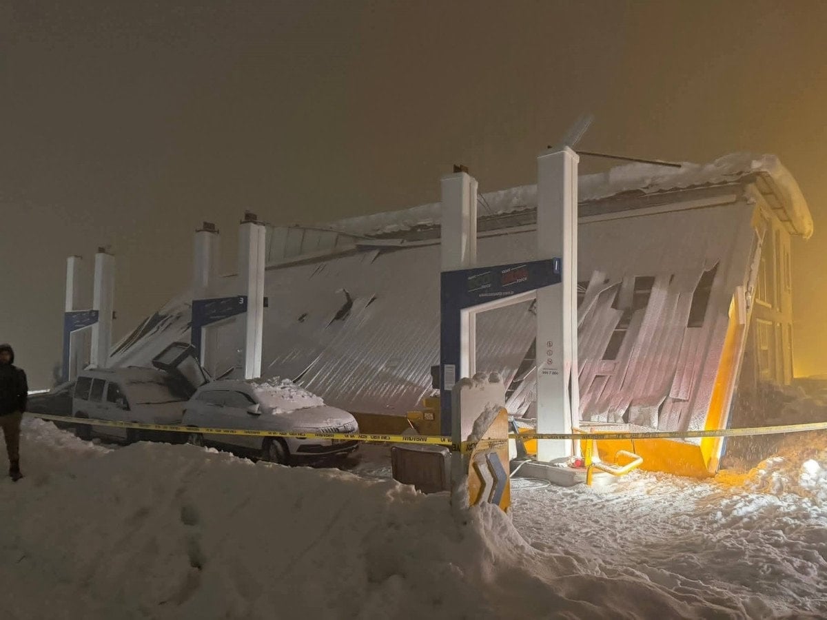 Hakkari’nin Derecik ilçesinde hizmet veren bir akaryakıt istasyonunda, yoğun kar yağışının ardından çatıda biriken kar kütlesinin ağırlığına dayanamayan yapı, aniden çöktü.