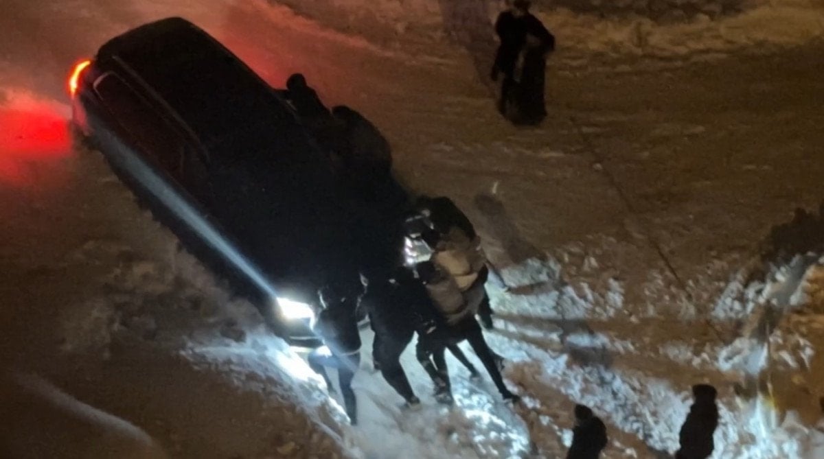 Kendi imkanlarıyla araçlarını hareket ettiremeyen sürücülerin yardımına çevredeki vatandaşlar yetişti.